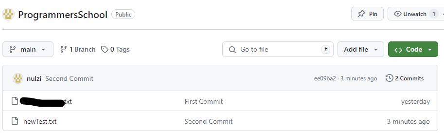 성공적으로 올라간 것을 볼 수 있습니다. 앞으로 Github 리포지토리에 올리는 작업을 'push'라고 하겠습니다.
