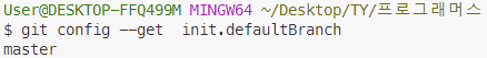 - git config --get init.defaultBranch : 초기 브랜치 이름 확인합니다.