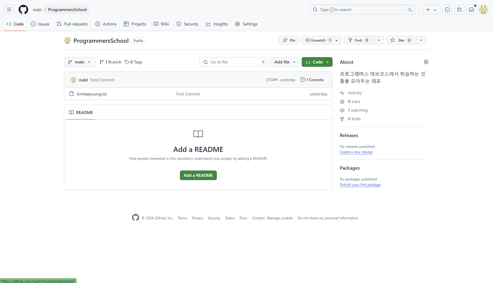 이제 새로운 파일을 만들고 commit과 push까지 해보겠습니다.