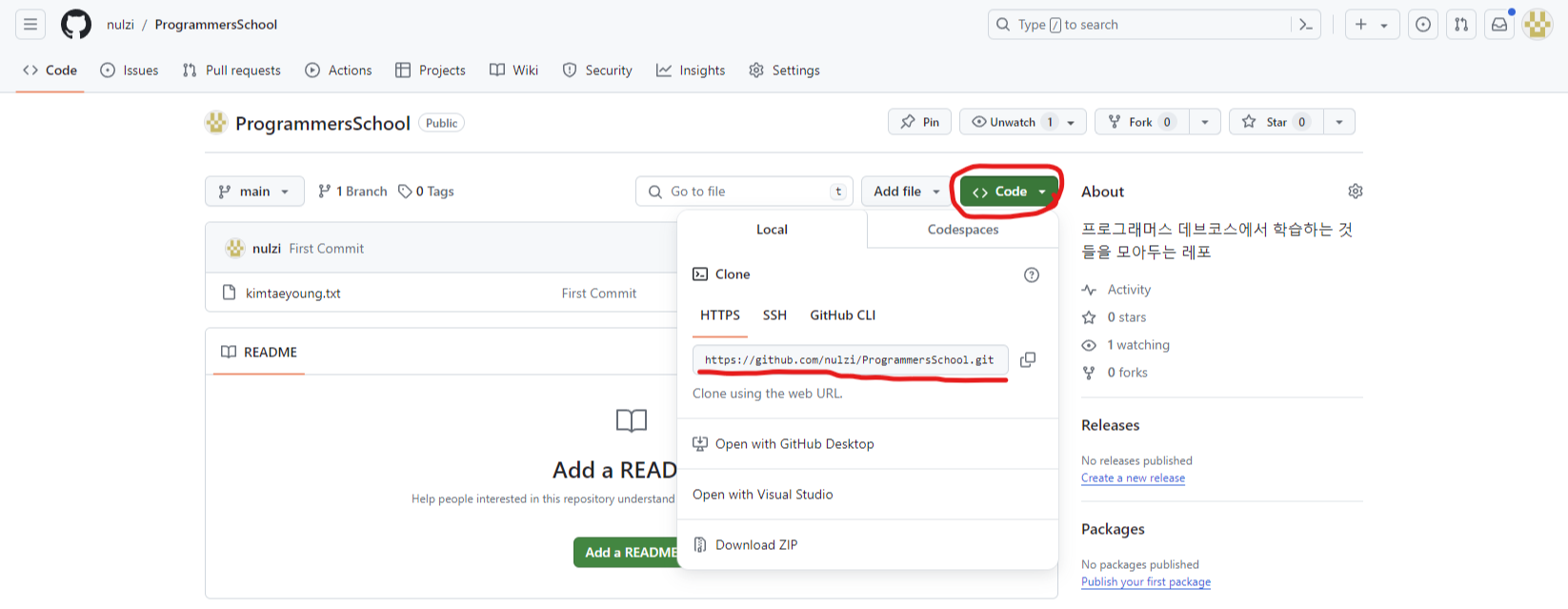 내려받기 위한 명령어는 여러 종류가 있지만 우선 `git clone` 명령어를 사용하겠습니다.