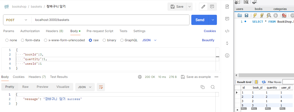 지난 시간 좋아요 API를 추가하고 책 API를 수정했습니다. 이번 시간에는 장바구니 API를 추가해 보겠습니다.