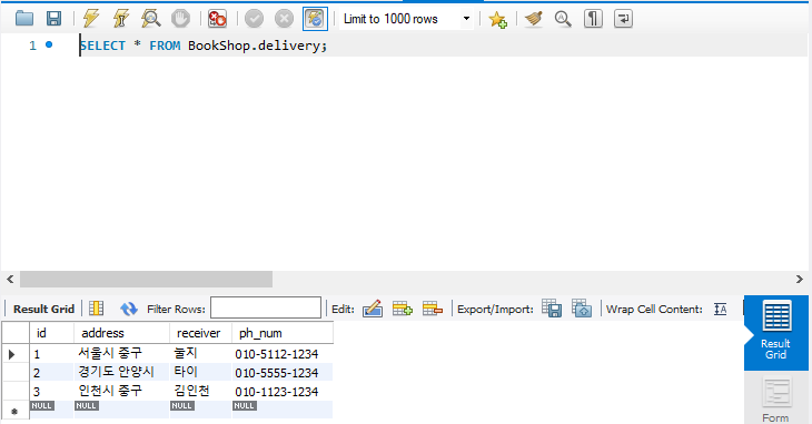 - 서버 연결 후 별도의 insert가 없다면 0이 나온다.