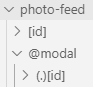 위 사진과 같이 사진 피드를 클릭하면 '/photo-feed/[id]'로 이동하면 '@modal/(.)[id]'에서 intercept를 통해 기존 '/photo-feed' 화면에서 모달창을 보여주게 됩니다.