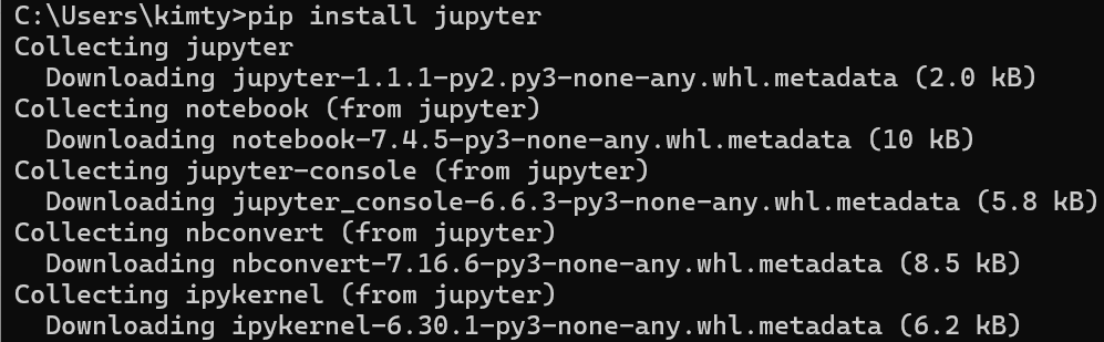 다운로드가 끝났다면 `jupyter notebook` 명령어를 실행해서 사용할 수 있습니다.